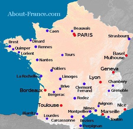 Lotnisko LYS należy do trzeciego co do wielkości miasta we Francji, Lyonu. Jest to ważny węzeł komunikacyjny dla regionu Owernia-R Rodan-Alpy, położony 20 km na południowy wschód od centrum Lyonu, jak pokazano na mapie lotnisk we Francji. Znane jako lotnisko Paryż Beauvais, znajduje się nieco dalej niż 85 km na północny zachód od Paryża. Jest ono głównie używane przez czarterowe i tanie linie lotnicze, takie jak Ryanair, Wizzair, itp. Lotnisko Marseille Provence Airport znajduje się 27 km na północny zachód od Marsylii. Jest to największe francuskie lotnisko pod względem liczby pasażerów i trzecie pod względem wielkości ruchu towarowego. Lotnisko NCE jest tylko 6 km na południowy zachód od Nicei i jest trzecim najbardziej ruchliwym lotniskiem w kraju. Jest to hub linii Air France i baza operacyjna dla Easyjet