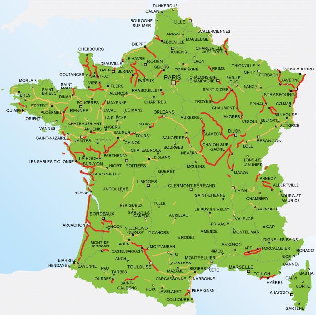 Od oznakowanych ścieżek rowerowych w dużych miastach i małych miejscowościach do zielonych ścieżek rowerowych wzdłuż rzek i kanałów oraz przez parki i lasy, Francja jest pokryta ścieżkami rowerowymi, dzięki czemu podróżowanie i zwiedzanie na rowerze jest znacznie bezpieczniejsze i przyjemniejsze, co można zobaczyć na mapach rowerowych Francji. Jeśli jesteś pieszym, musisz być świadomy ścieżek rowerowych i nie chodzić po nich, chyba że są one przeznaczone do dzielenia się. Czasami pasy dla pieszych i rowerów są oddzielnie oznakowane na ścieżce, aby rowerzyści mogli jeździć bez przeszkód, a piesi mogli chodzić bezpiecznie.
